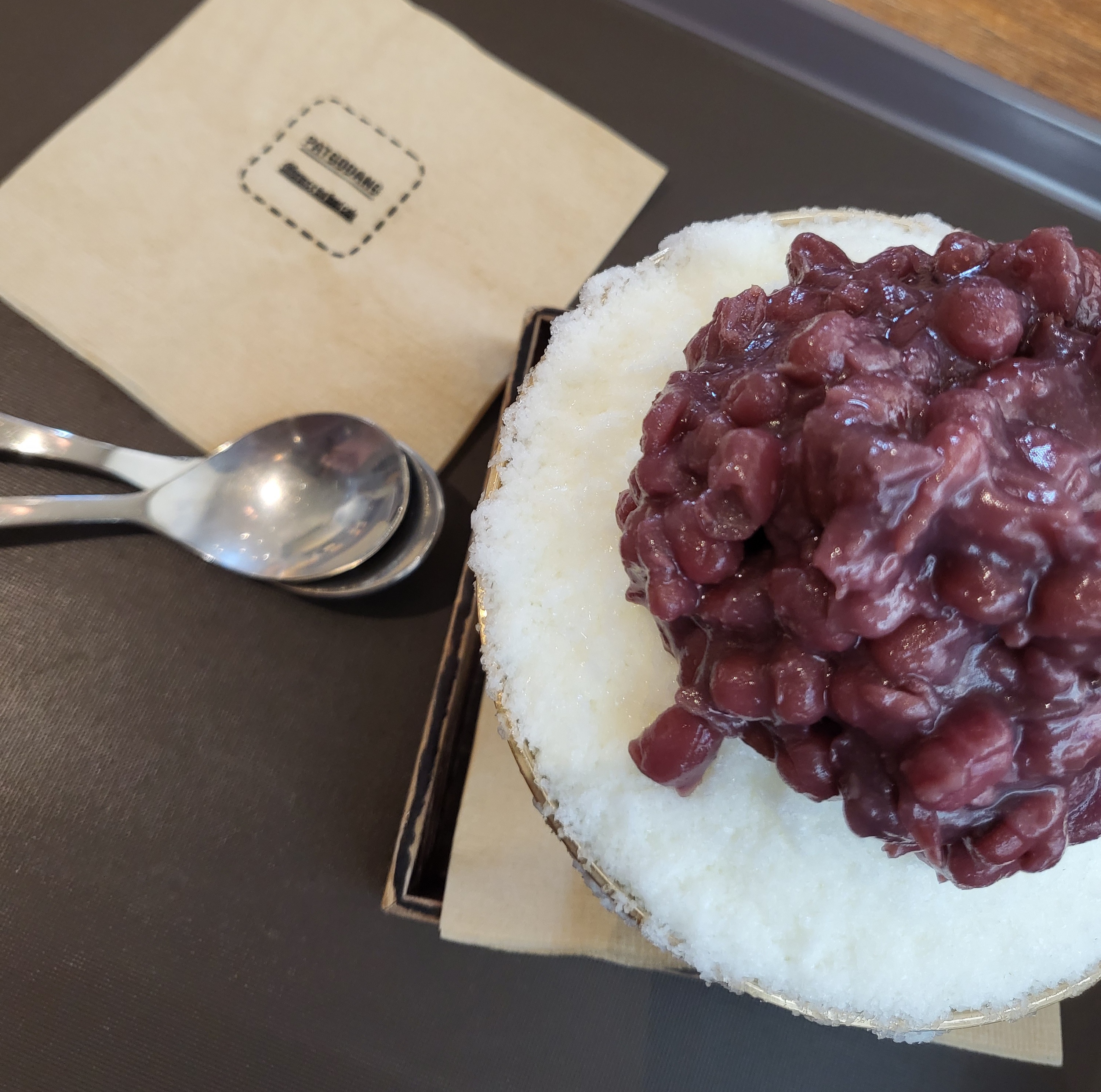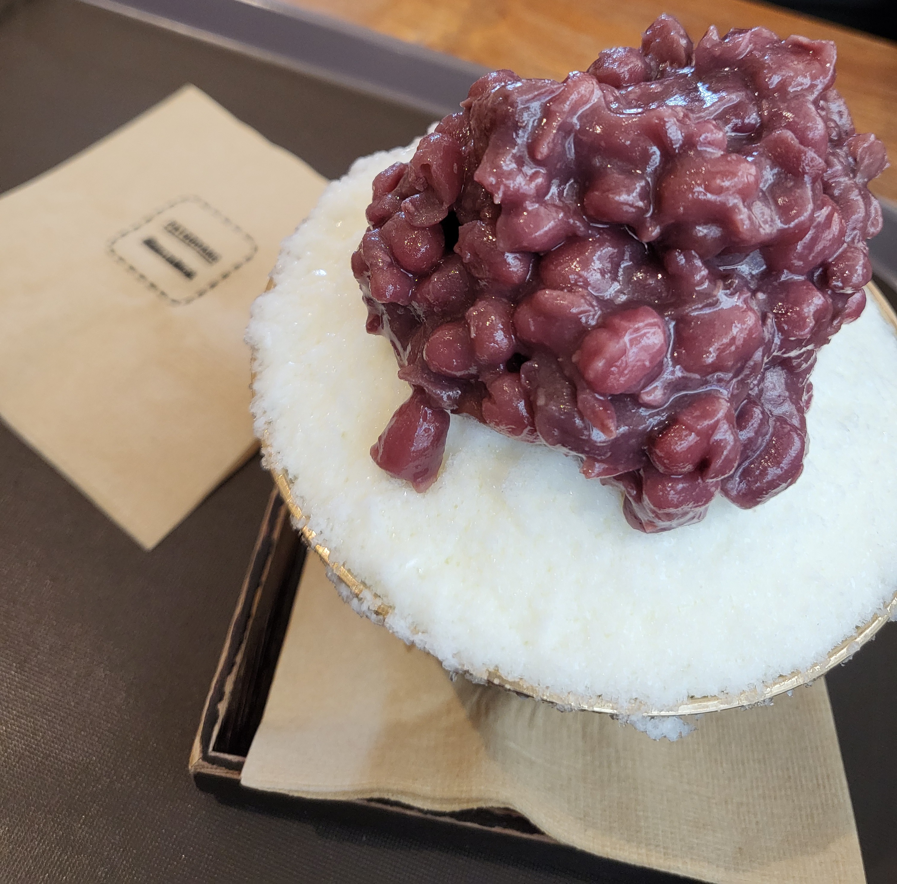 저흰 팥과 우유의 조합! 기본조합을 갖춘 눈꽃빙수를 주문했습니다😄