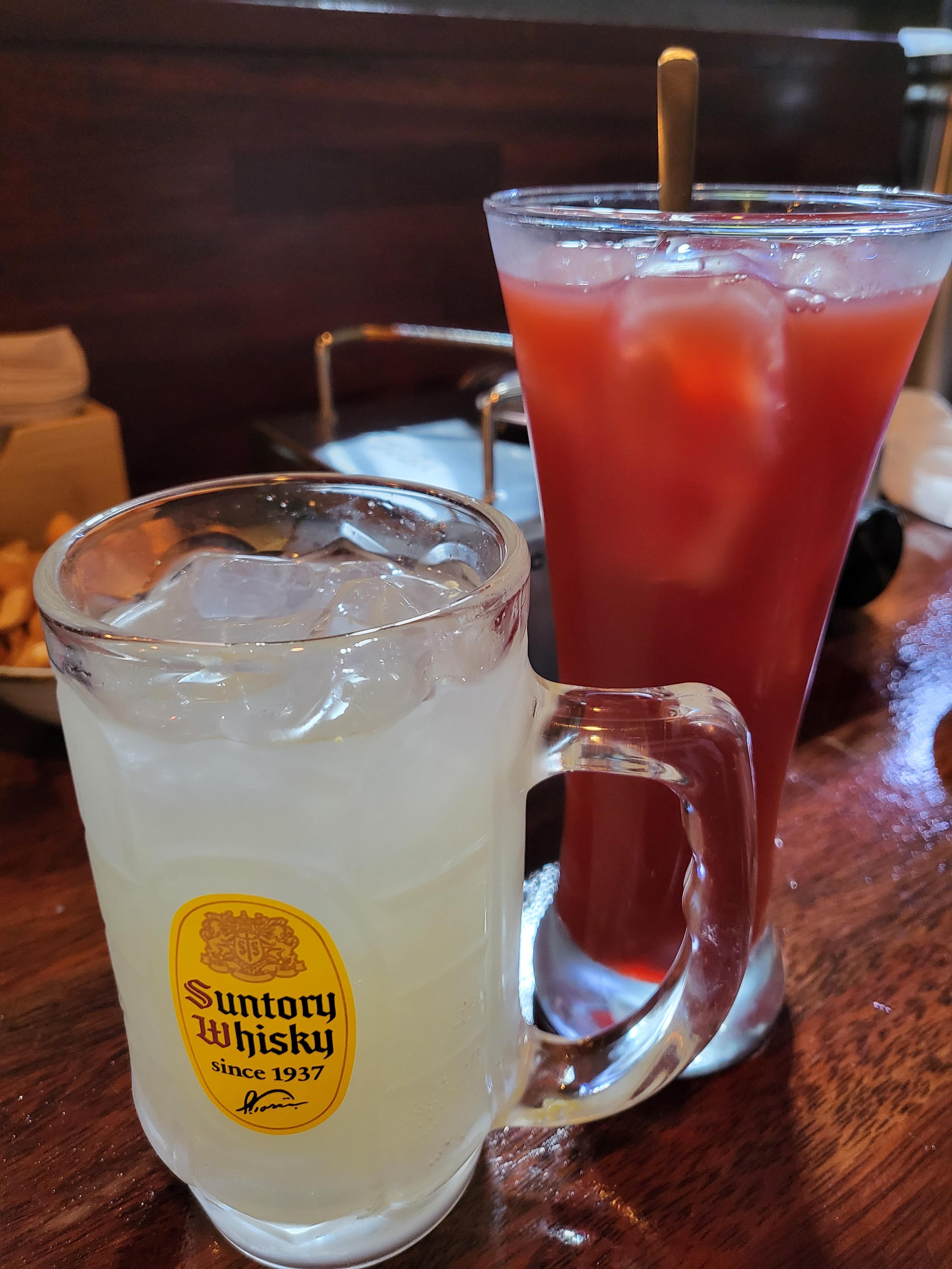 그리고 빠질 수 없는 주류! 쏘맥이 넘 땡겼지만 우선 색다른걸 먹어보자! 하고 전 유자하이볼과 신랑은 카시스오렌지를 시켜봤습니다.
