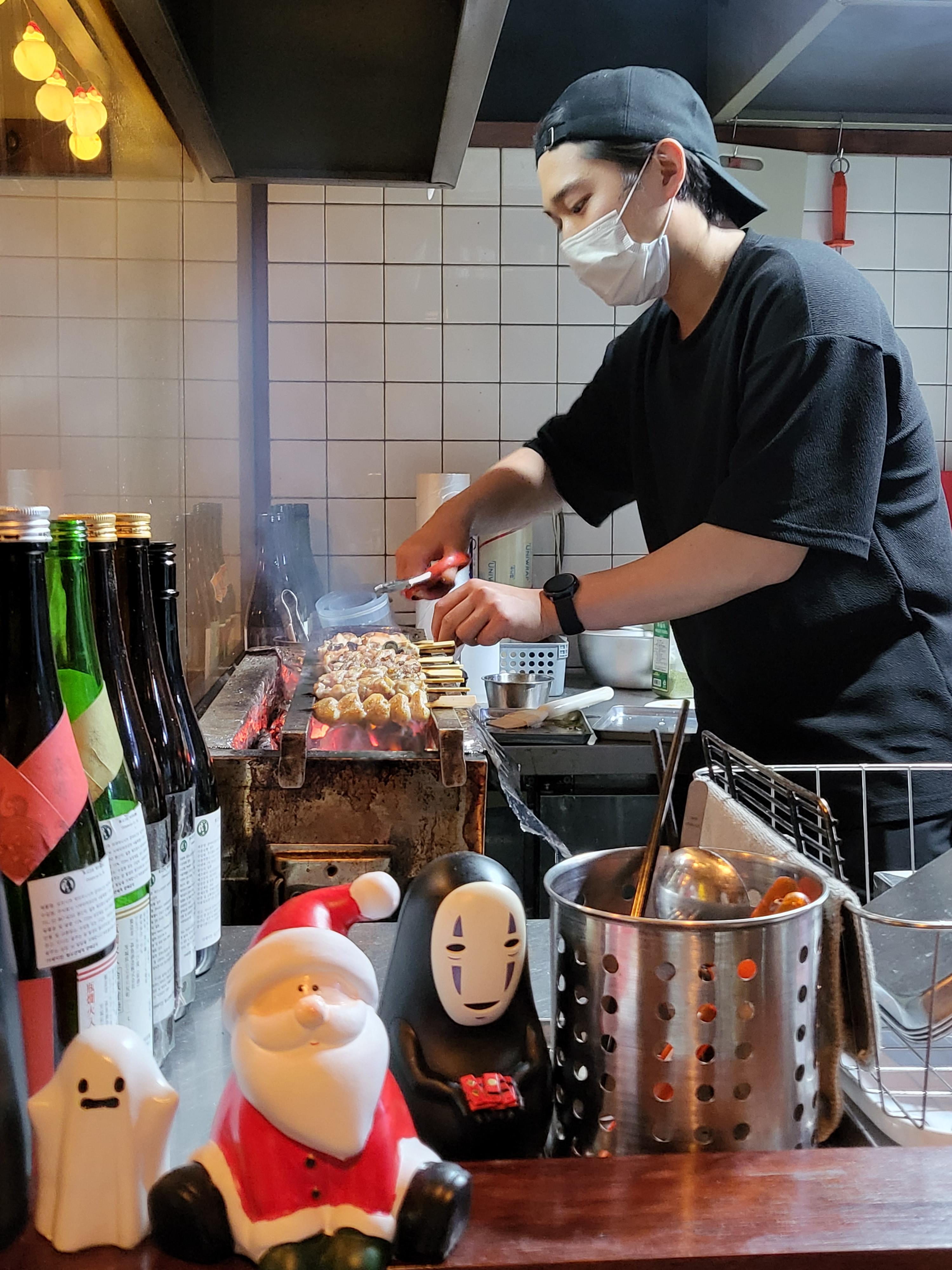 야키토리 만들고 계시는 사장님. (사진 올려도 된다고 허락 받았습니다)