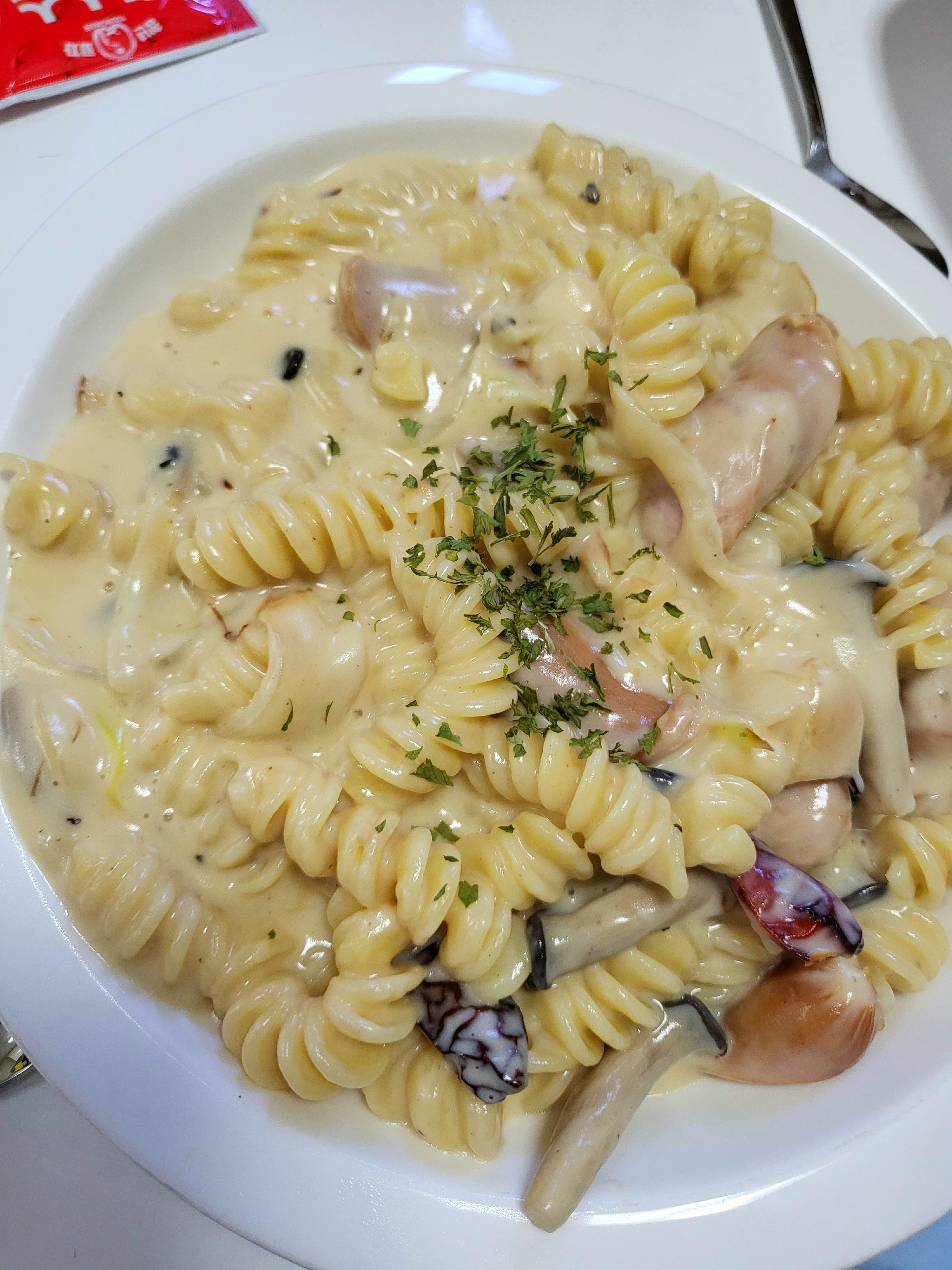 집에 푸실리 파스타면이 조금 남아 있길래 다 없애버릴 겸 요 아이를 사용했답니다?