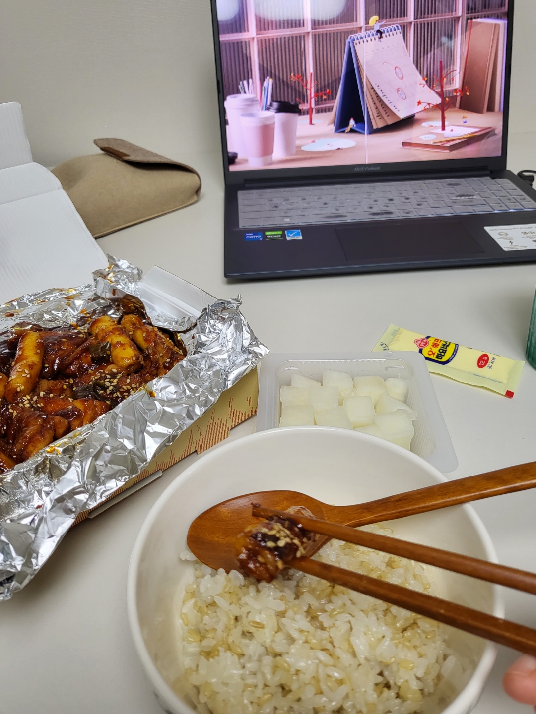 치킨상자를 오픈하기전 밥을 준비해줍니당🍚