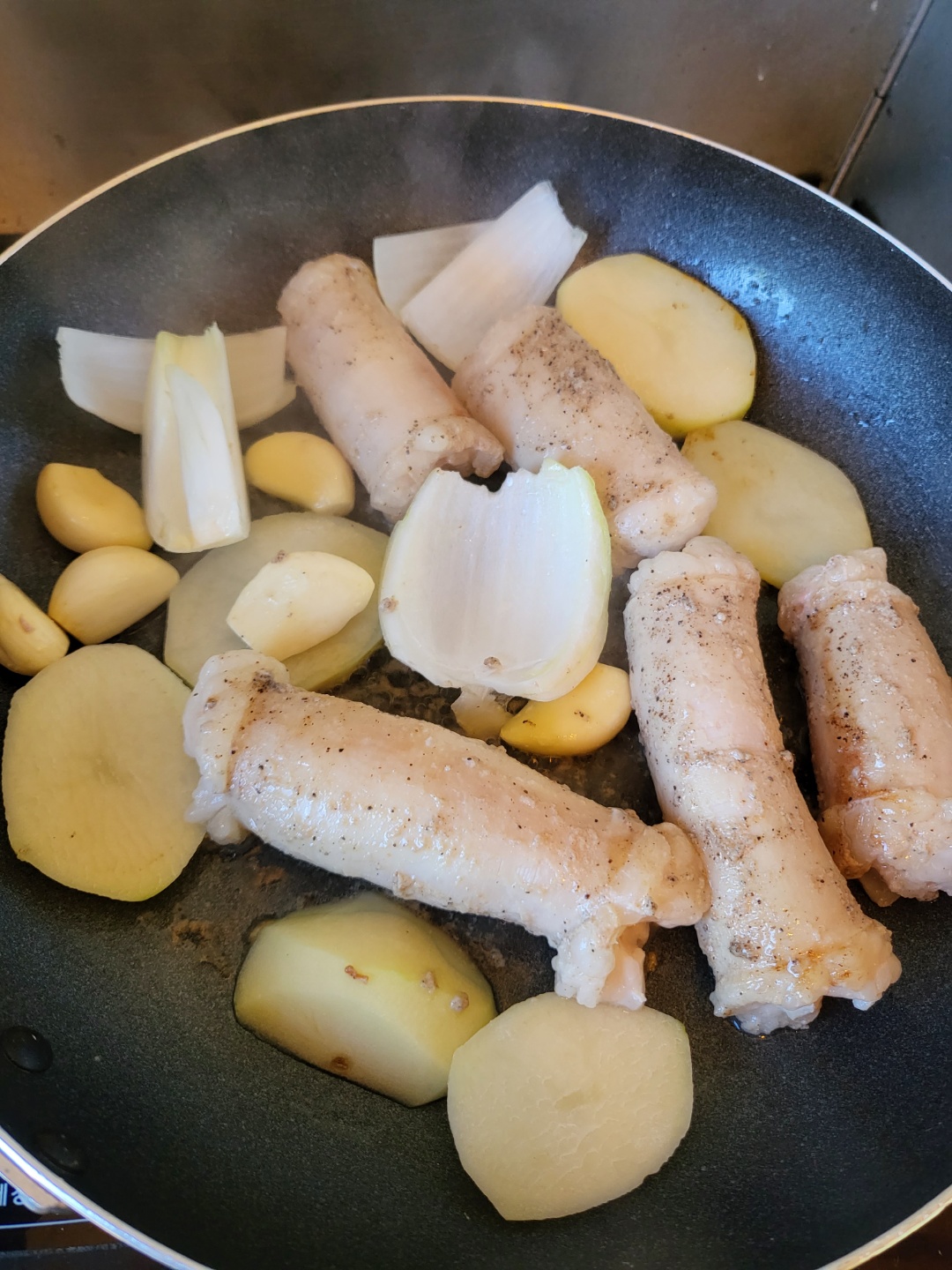 마늘🧄과 감자🥔, 양파🧅도 노릇해질 때 까지 같이 구워주면 최고죠🙃