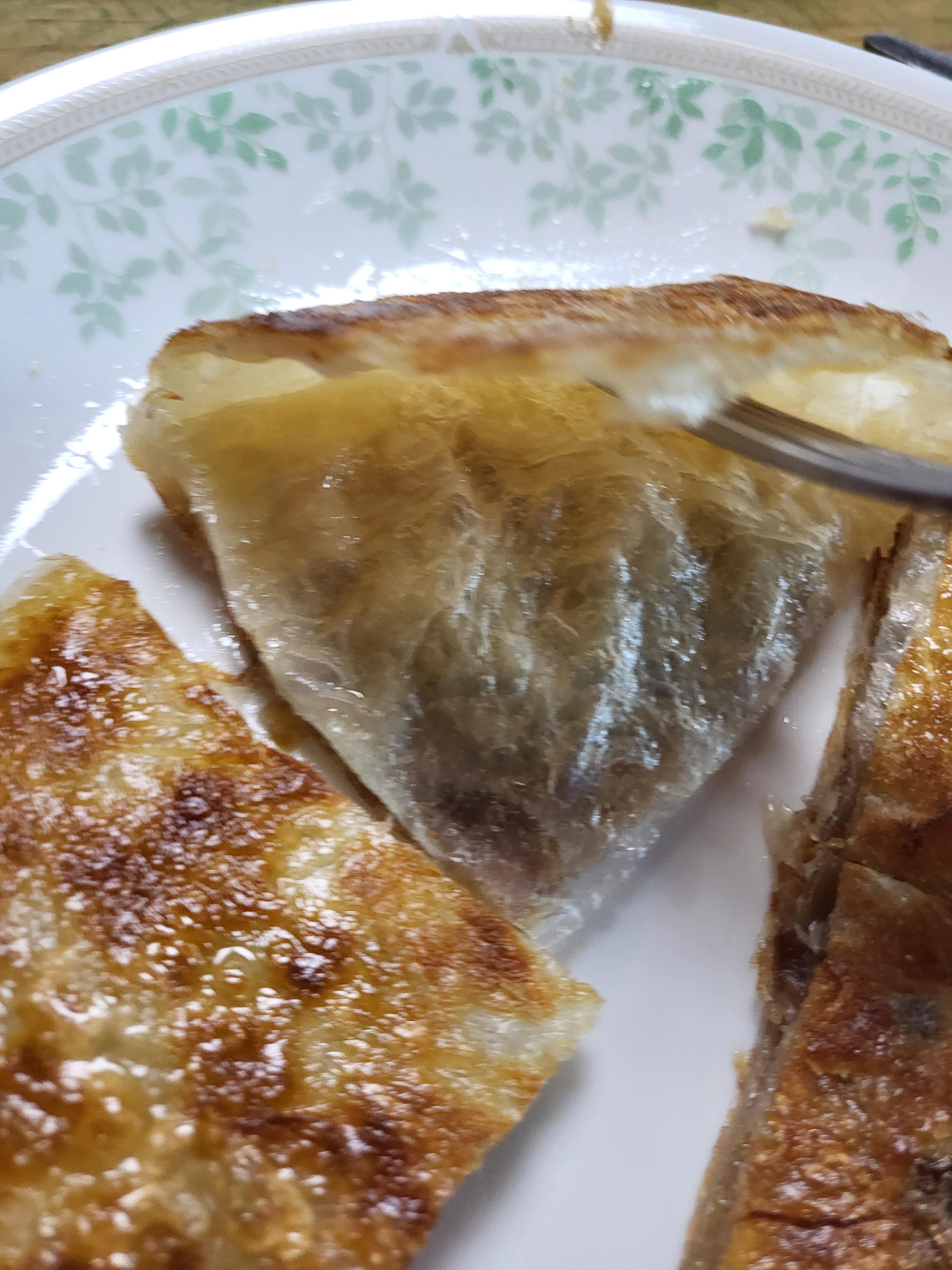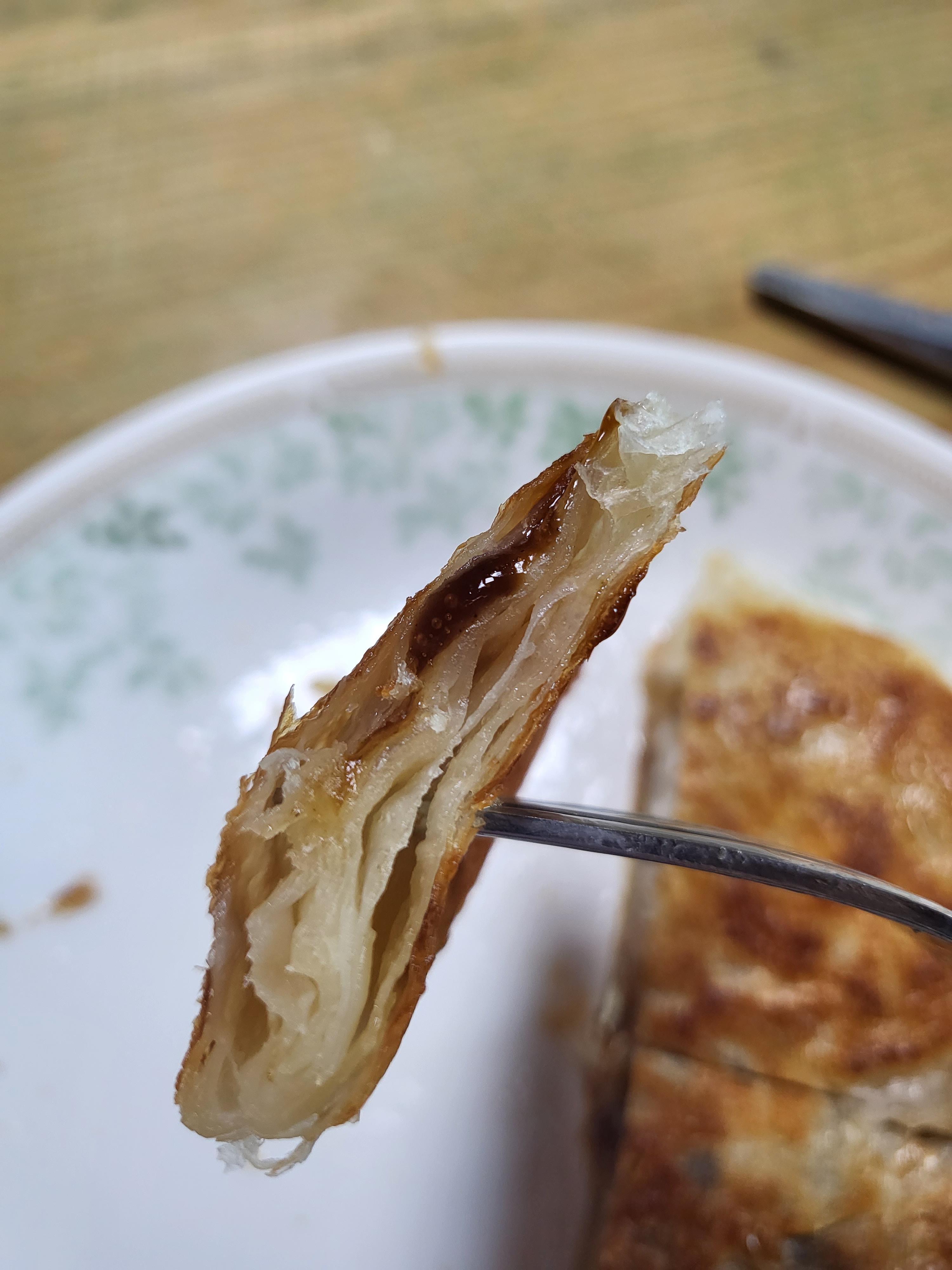 겹겹이 보이는 저 결 보이시나요?? 바삭한 식감과 달콤한 설탕과 그리 심하지 않은 계피향까지. 넘 맛있었어요ㅠㅠ 솔직히 이날 넘 배부른 상태에서 리뷰하고자 한 개를 먹었는데, 만약 배고팠다면 그 자리에서 4장 다 먹어치웠을 수도 있을 것 같아요^^