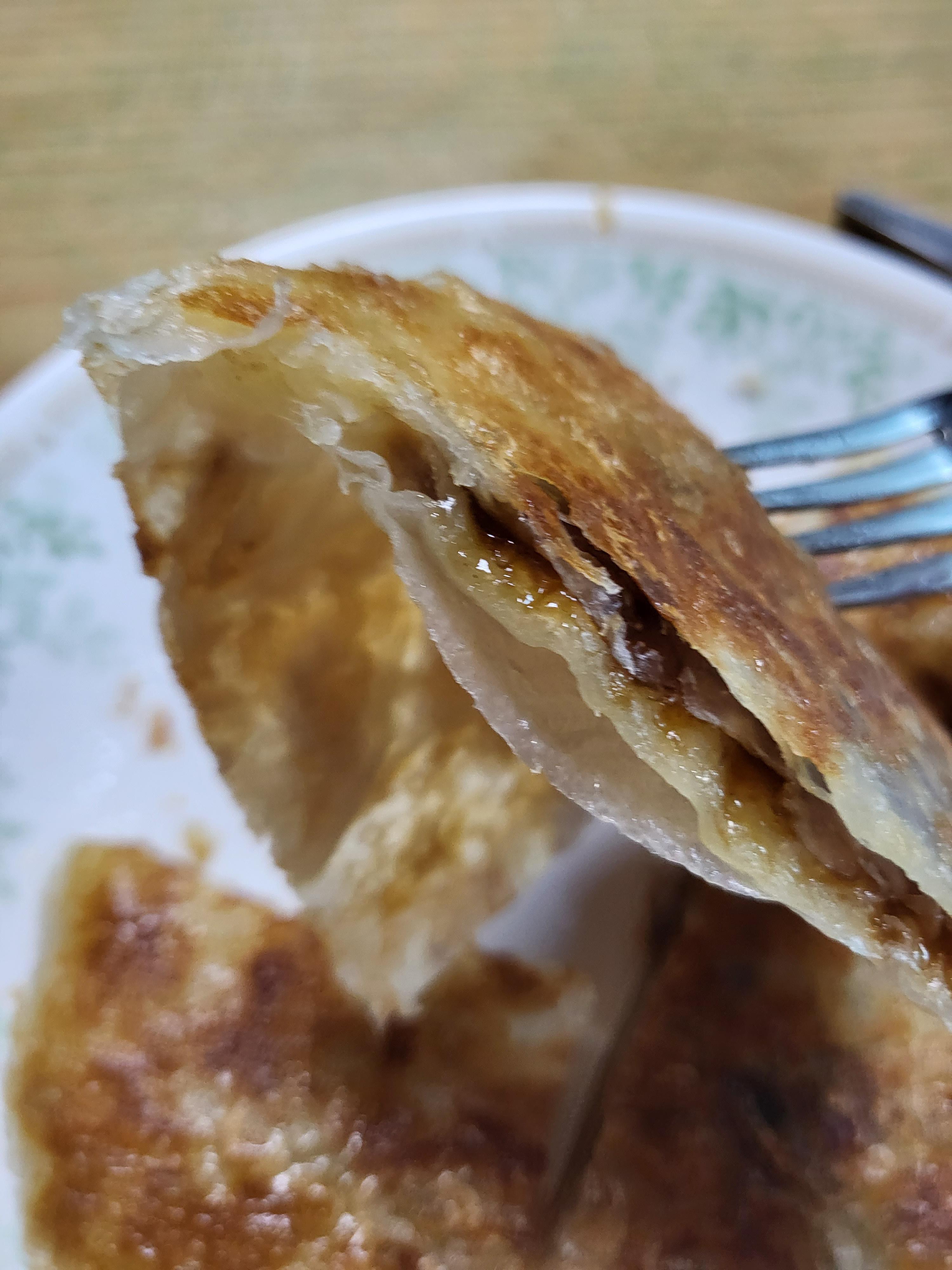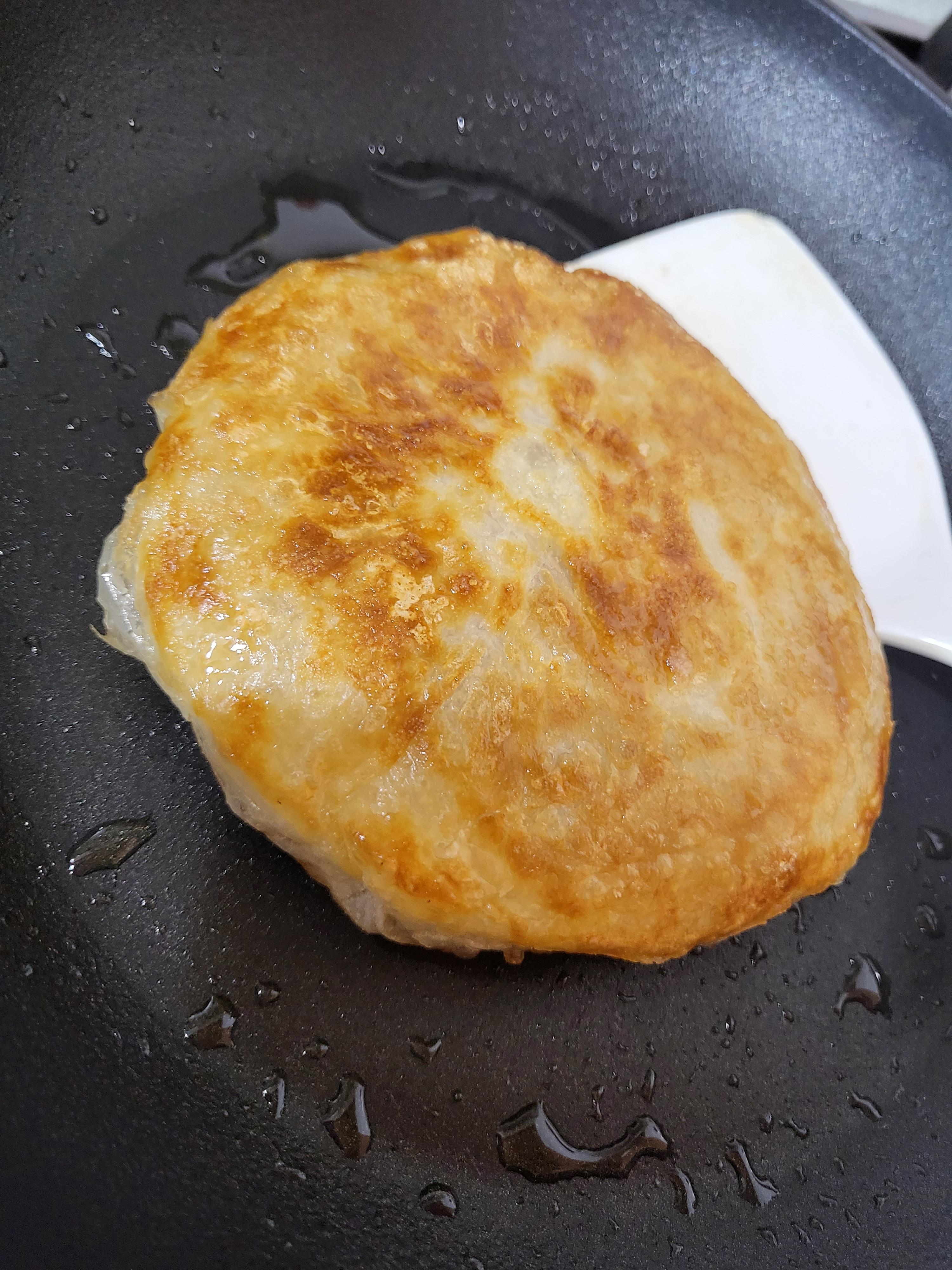 대만 호떡...? 찾아보니 충좌빙이라는 대만 전통 간식이 있더라고요. 페스츄리 같은 반죽에 계란, 치즈 등 이것저것 넣어서 즐길 수 있는 간식인 것 같더라고요. 계란, 치즈 말고 계피 호떡이니 계핏가루랑 설탕이 들어가 있겠죠? 포장지 뜯어보면 호떡 크기는 손바닥보다 크기가 크고 총 4장이 들어가 있습니다.