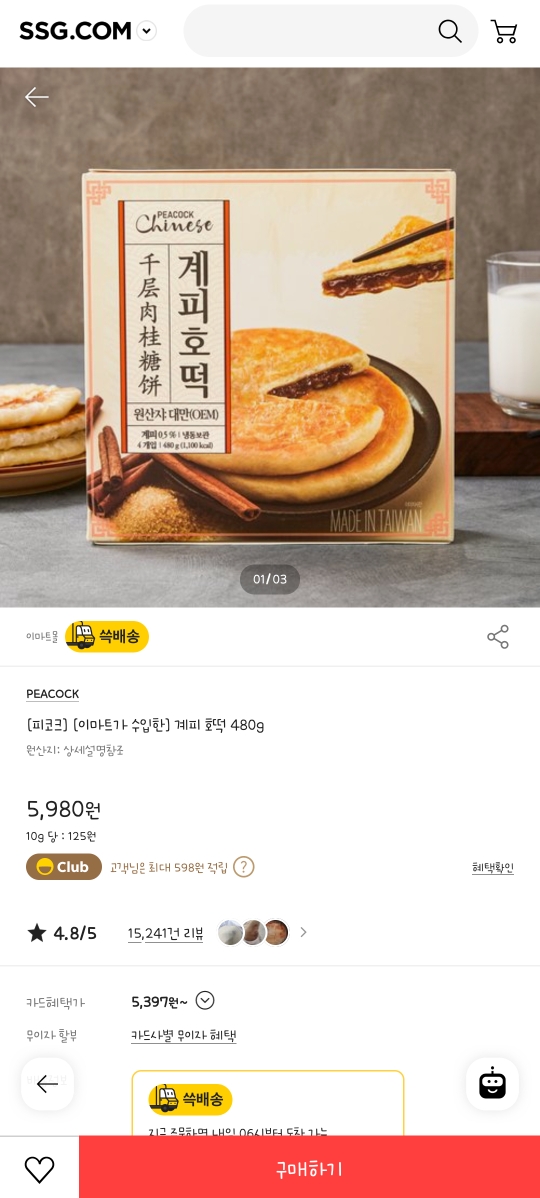 피코크 계피 호떡 하나라면 이번 겨울 간식으로 즐길 수 있을 것 같습니다. 이마트 매장에도 판매하고 있겠죠??? :) 가시면 꼭 하나 사셔서 가족들과 즐거운 디저트 타임 가져보시는 건 어떨까요~😊