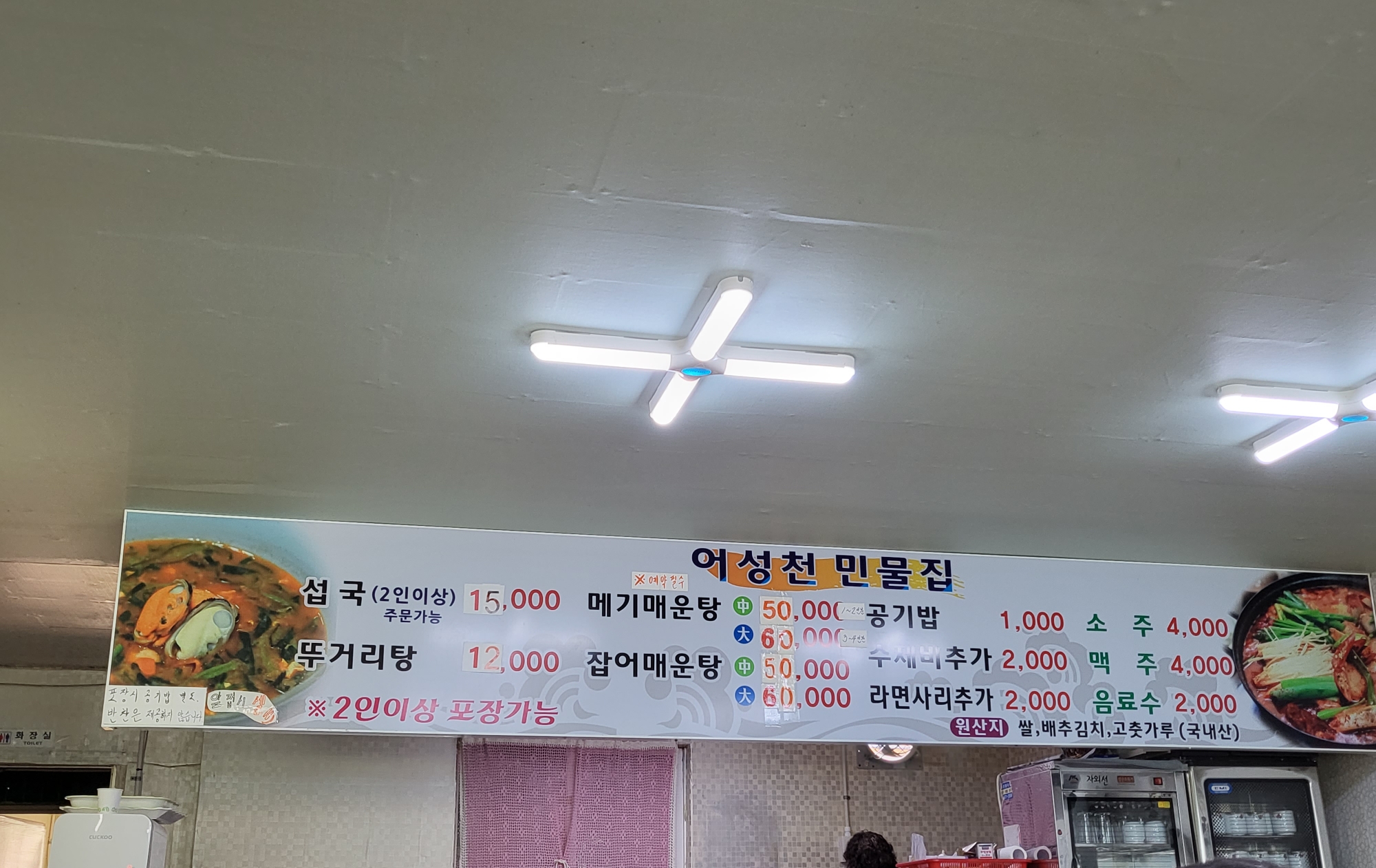 저희가 방문했던 곳은 시댁 식구들이 예전부터 자주 가시던 곳입니다. 어성천민물집! 섭국, 뚜거리탕, 메기매운탕 등 민물고기 요리도 만드시더라구요ㅎㅎㅎㅎ 뚜거리는 뭘까요.... 찾아보니 꾹저구랍니다. 생소해생소해. 저희는 섭국을 시켰습니다.