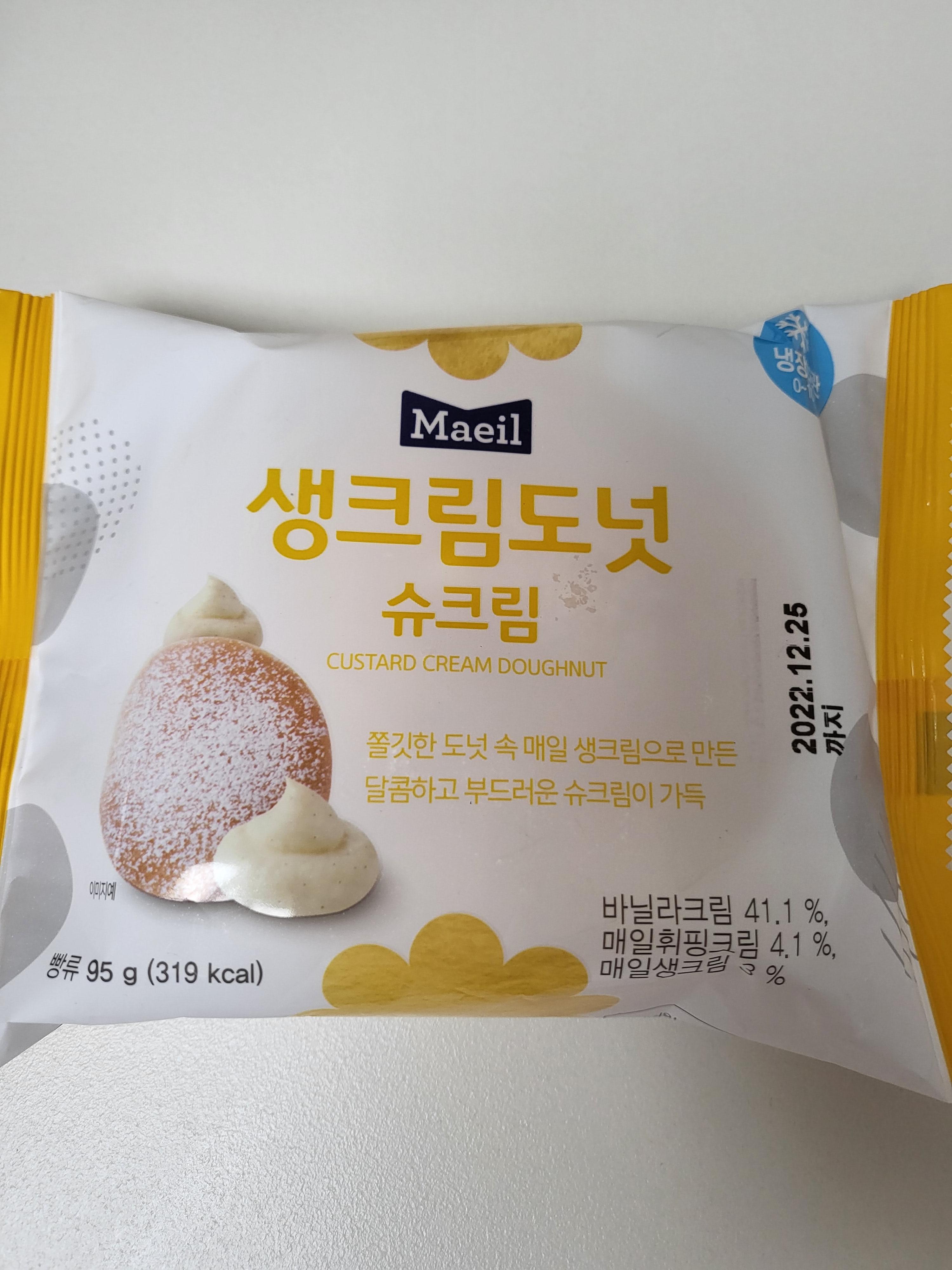 도넛집에서 파는 아주 훌륭한 맛은 아니었지만 그래도 보이면 또 사먹고싶은 그런맛이었어요. 크림도 많이 달지 않아 좋았고, 빵도 퍽퍽하지 않아 좋았아요! 포장지엔 쫄깃하다했지만 그정도는 아니고 조금 촉촉하다 정도?ㅋㅋㅋㅋㅋㅋㅋ