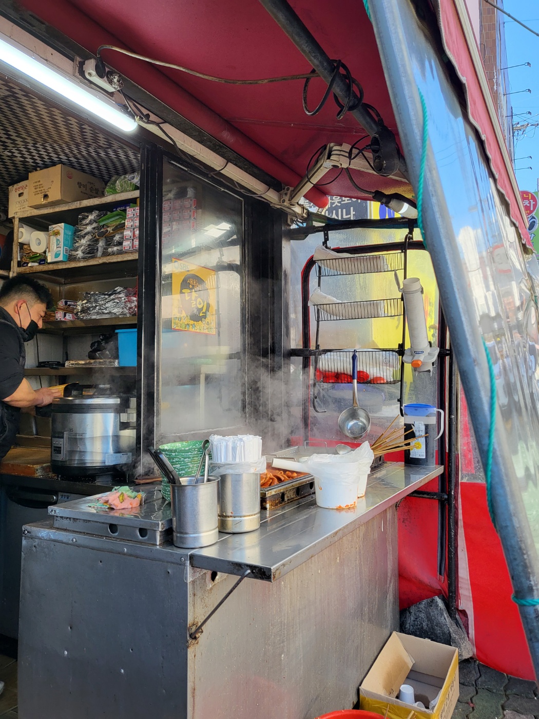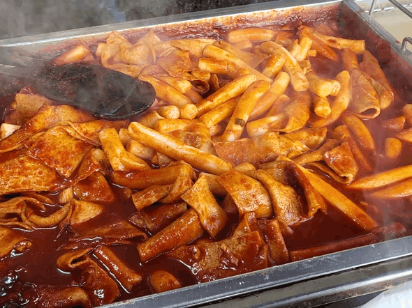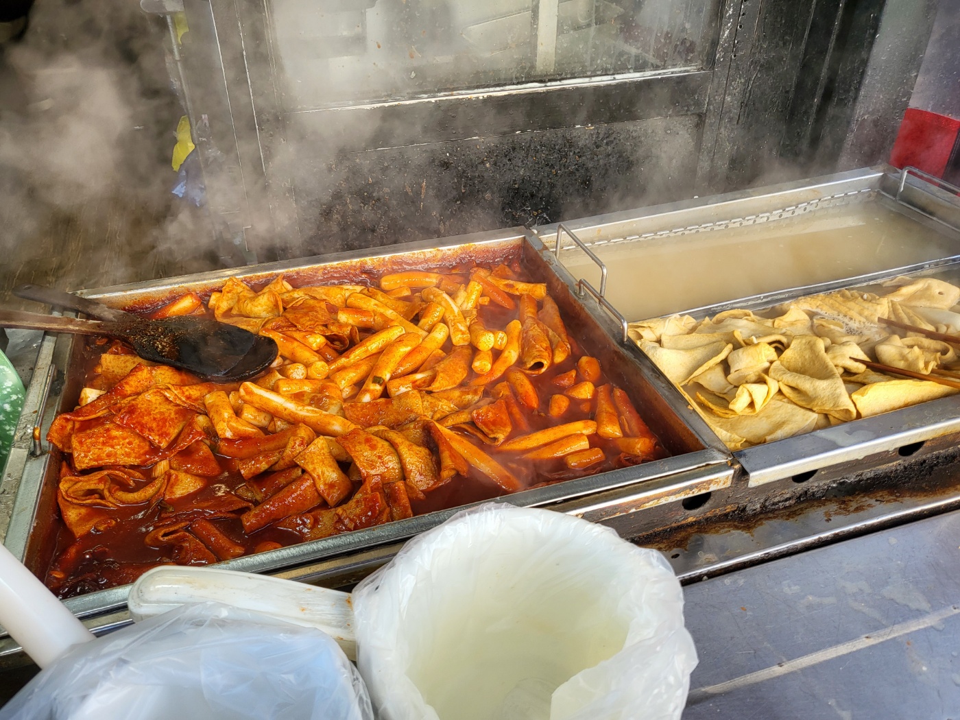 저 떡들을 오른쪽 오뎅 국물에 넣어 놓더라구요! 그래서 어느정도 익으면 왼쪽 떡볶이 칸으로 이동해주더라구요. 그럼 간이 더 잘 맞아 맛있을 것 같았어요! 오뎅도 가득가득! (앗... 이번 여행에서 부산 물떡을 또 못 먹어 봤네요?ㅠㅠㅠㅠ)