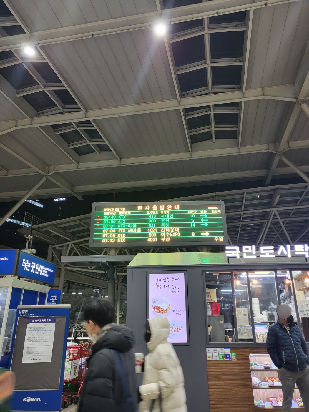 코로나 때는 KTX에서 취식도 금지였을텐데! 요즘은 기차 안에서 취식도 가능하더라구요. 이른 시간이었는데도 서울역엔 사람이 아주 많았답니다.